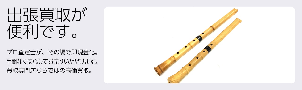 出張買取なら、大量の重い尺八を運ぶ必要はございません。 手間のかからない出張買取なら、ご指定のお時間に弊社のスタッフが買取にお伺いいたします。 お電話の受付は19時まで、お電話お待ちしております。 下記電話ボタンをタップし、お気軽にご相談ください。